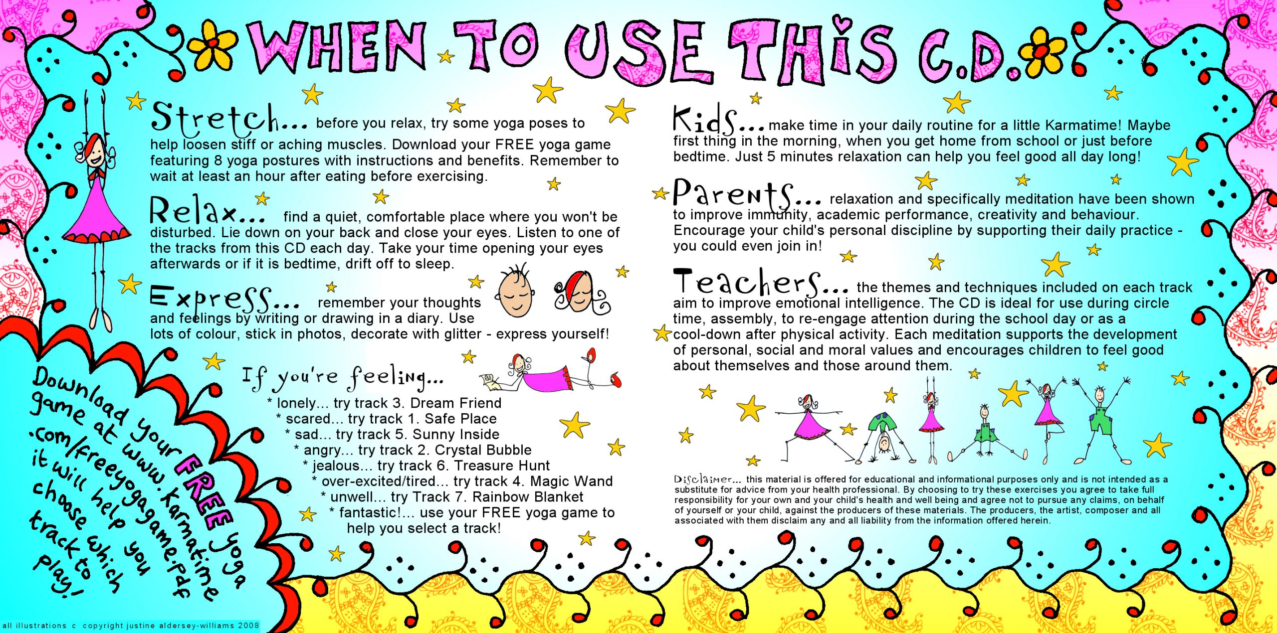 - 'Relax... It's Karmatime - Magical Meditations for Children' CD booklet with links to Spotify tracks free online